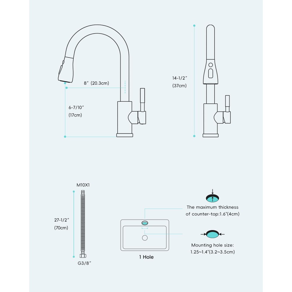 - 【Worry-Free Experience】--- All this pull down faucet body, accessories and user manual will be well packed in the package. If you find something else missing or faulty, please feel free to contact us first via We are here to help. Just enjoy the convenience and style it brings to your kitchen