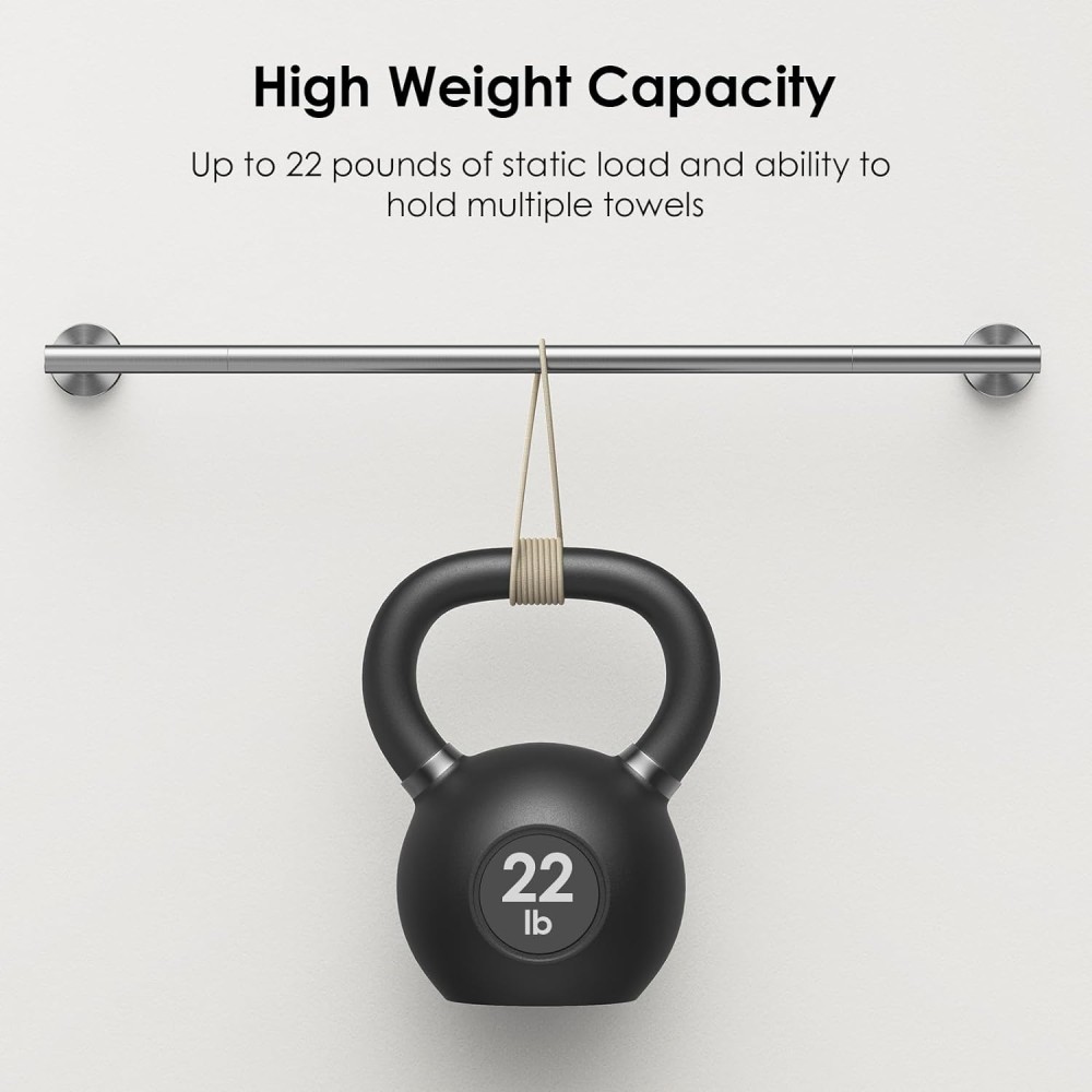 - Holds Multiple Towels: Ideal for hanging one large towel or multiple hand towels. Available in several use length (9''-30''). (Up to 22 pounds of static load).